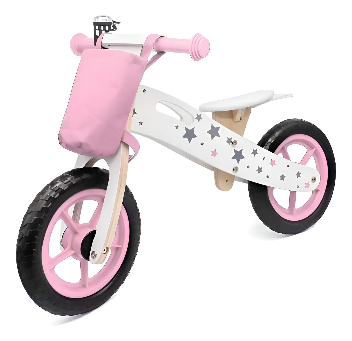 Bicicleta de equilibrio de madera para niños: liviana, segura y pensada para que aprendan a andar sin rueditas desde el primer día. Al no tener pedales ni transmisión, los peques impulsan con los pies, desarrollan el equilibrio, la coordinación y la confianza antes de pasar a una bici tradicional. El cuadro de madera ofrece una estructura firme con terminación suave al tacto, bordes redondeados y excelente estabilidad. Incluye asiento cómodo, manillar con topes de giro y puños antideslizantes para un agarre seguro. Las ruedas silenciosas tipo EVA (antipinchazo) permiten usarla en vereda, plaza o interiores sin marcar el piso y con mínimo mantenimiento. Ideal para paseos diarios y juego activo al aire libre. Recomendado para niños y niñas pequeños, con supervisión adulta. Capacidad de uso típica hasta 30 kg. Consejo de uso: ajustar la altura del asiento de modo que el niño apoye ambos pies en el suelo con las rodillas levemente flexionadas; comenzar en superficies lisas y aumentar la distancia gradualmente para que gane equilibrio y confianza. Color y detalles pueden variar según partida. Condición: nuevo. Marca Siofertas.